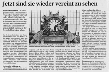 Vorschau auf die Ausstellung in der Zentralbibliothek in der Solothurner Zeitung vom 27. August 2014